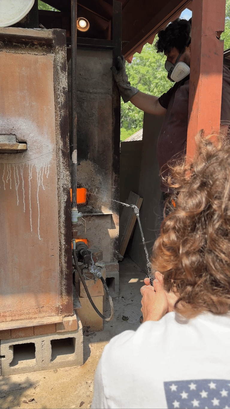 As the wood burns, it releases a myriad of gases, smoke, and fly ash. These elements interact with the pottery, creating variations in color, texture, and surface patterns. This interaction between the raw materials and the fire is what gives wood-fired pottery its distinctive and unique charm. It’s this unique charm that I love about atmospheric firing: this collaboration with the kiln and the fire to create the final desired work.